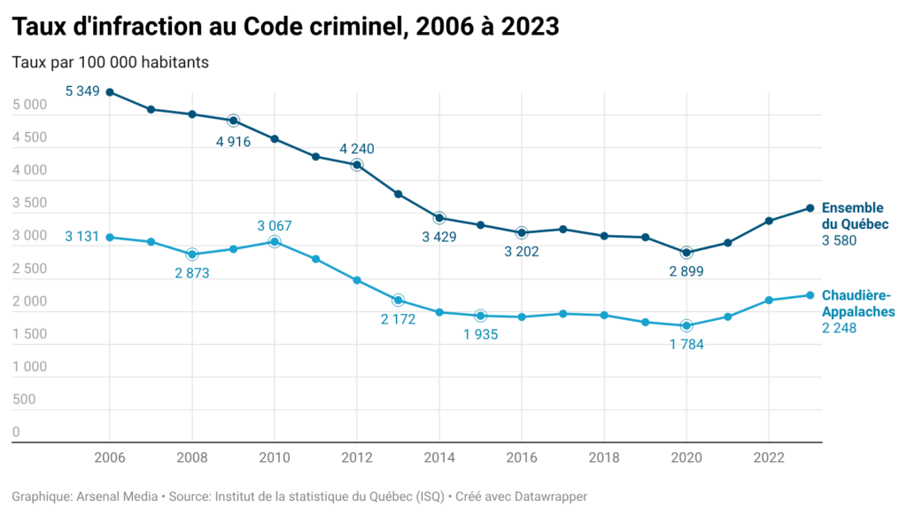 Taux de criminalité relativement stable sur 10 ans en Chaudière-Appalaches