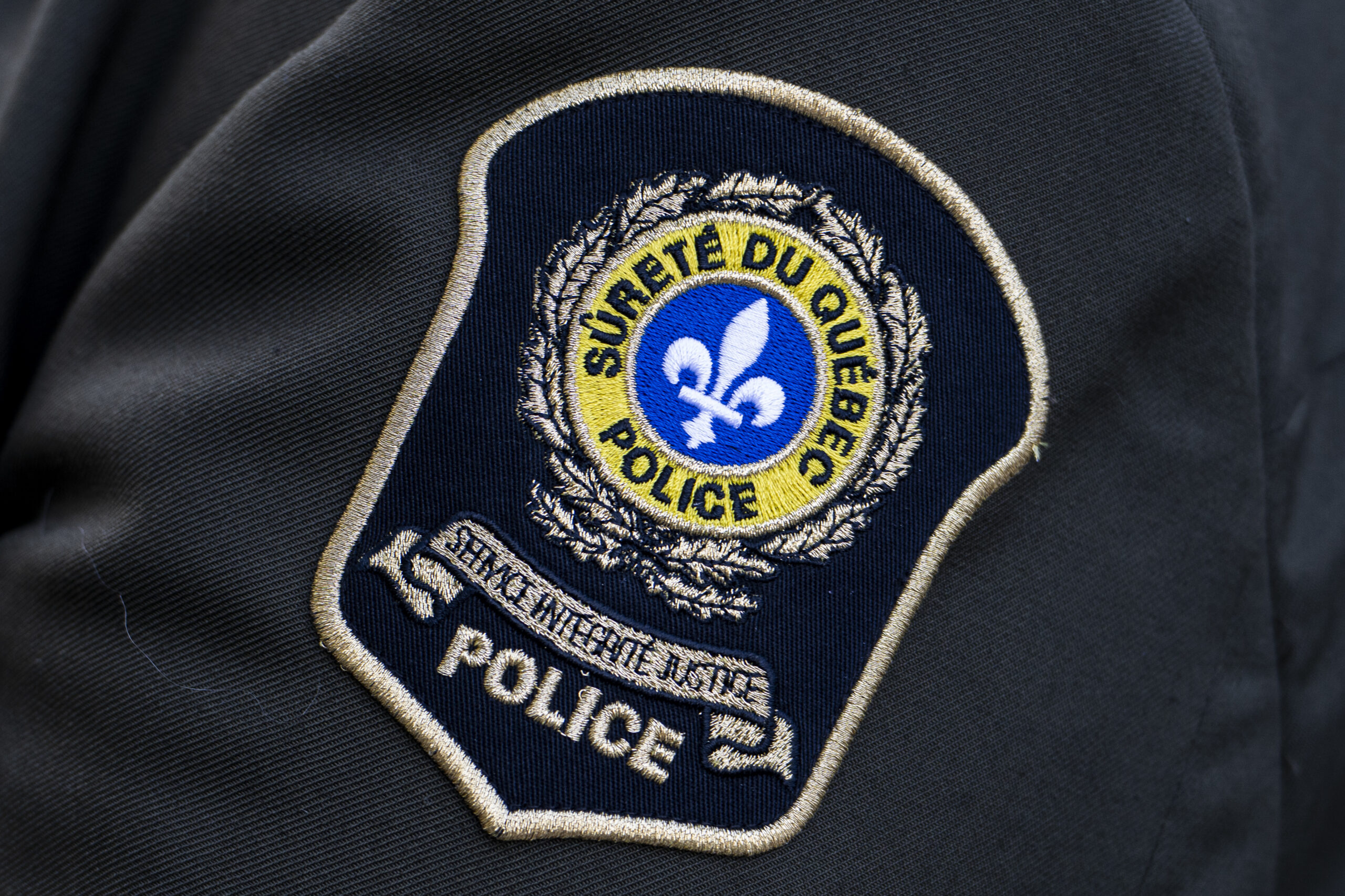 Cet écusson de la Sûreté du Québec est visible sur l'uniforme d'un policier, le dimanche 28 septembre 2025, à Ottawa. LA PRESSE CANADIENNE/Spencer Colby