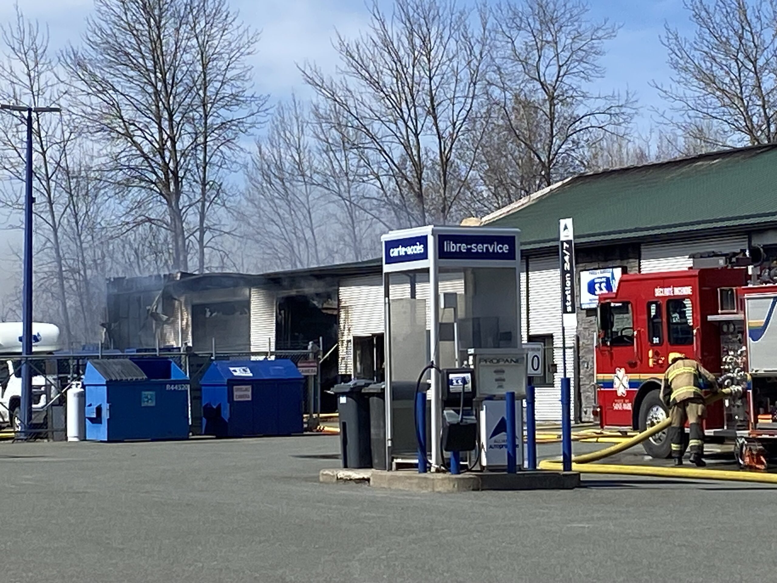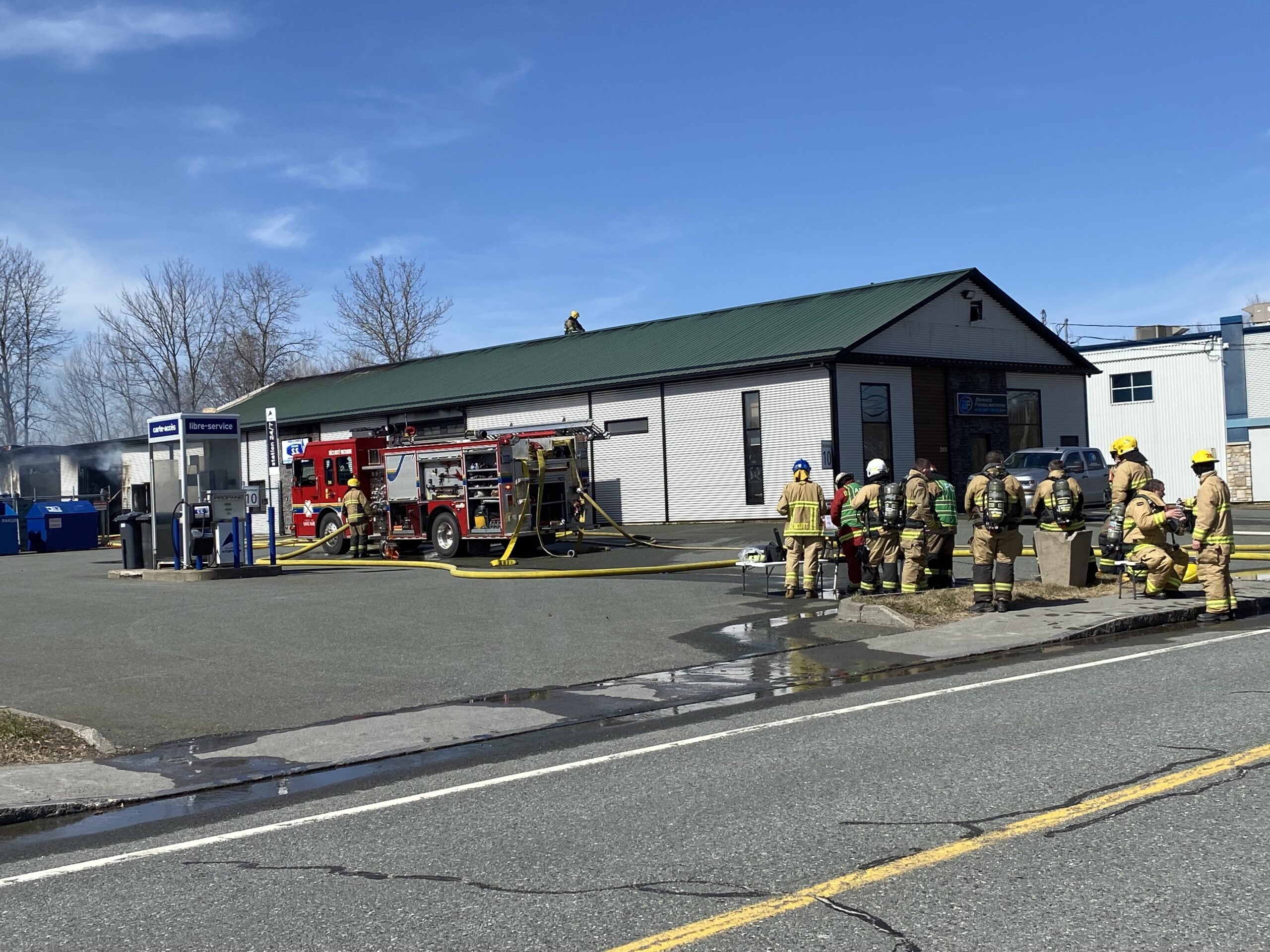 Photo: Jean-François Routhier - Arsenal Media Un incendie dans un commerce de la route Chassé à Sainte-Marie a entraîné des évacuations dans le secteur samedi après-midi.