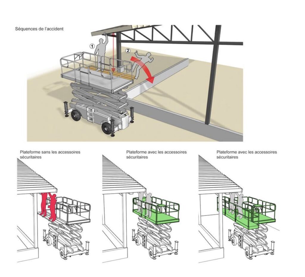 Selon la CNESST, l’accident «aurait pu être évité», puisque le travailleur et un collègue utilisaient une plateforme «munie d’un plancher latéral externe exempt de garde-corps». La chute a lieu lorsque la victime a excédé l’extrémité du plancher en effectuant un déplacement latéral.